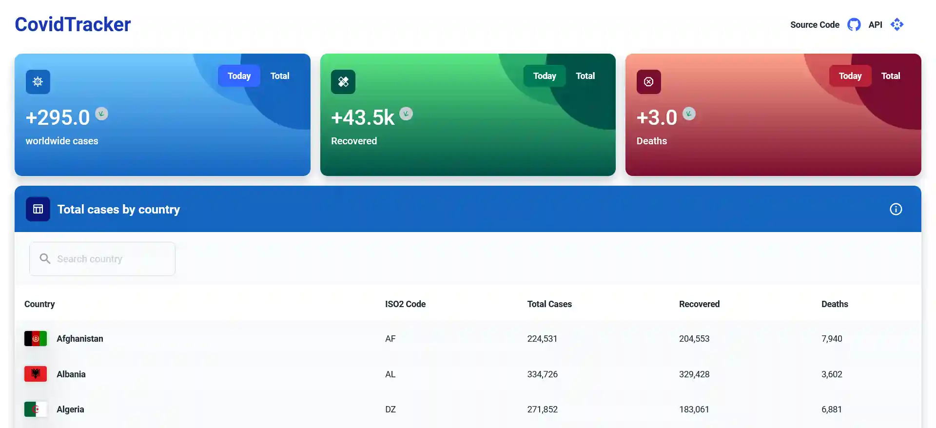 Get latest covid related stats in a table where user can filter using country and cases. It also has a map which show every countries data for quick view. It uses an open source api (disease.sh). Made using Reactjs, Javascript and MUI